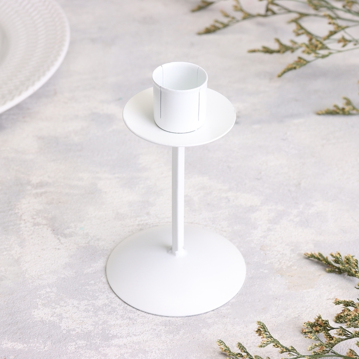 Подсвечник "Боб" металл на 1 свечу , 7,4х12 см, белый