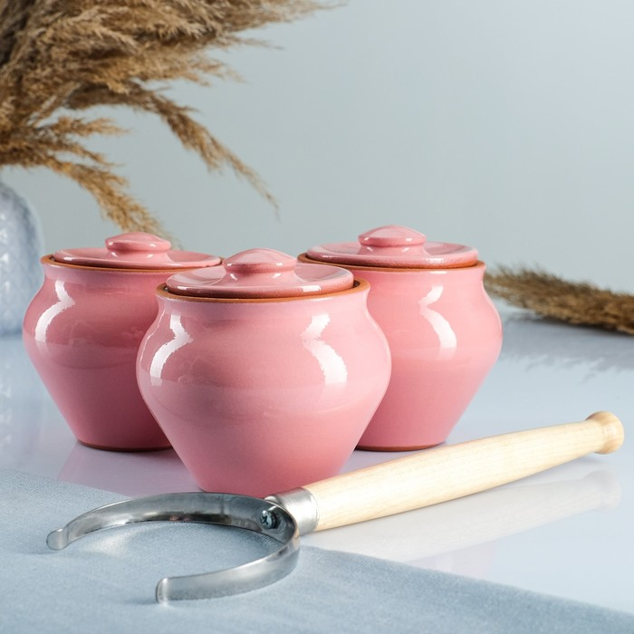 Набор "Вятская керамика Трио" 0,5лх3шт + ухват, розовый