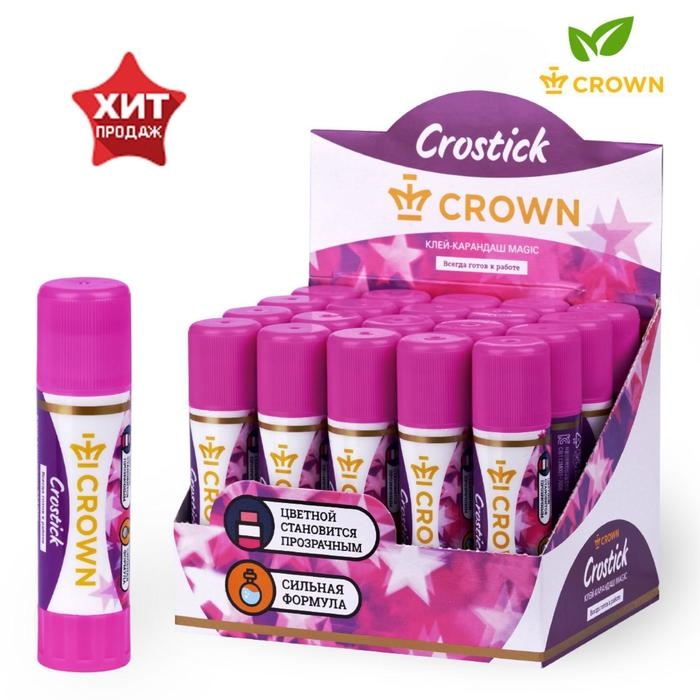 Клeй-карандаш 8 гр, Crown Magic PVP, с цветным индикатором