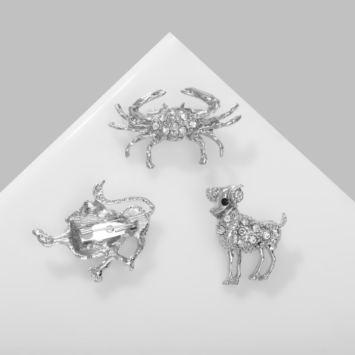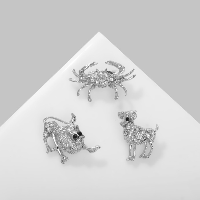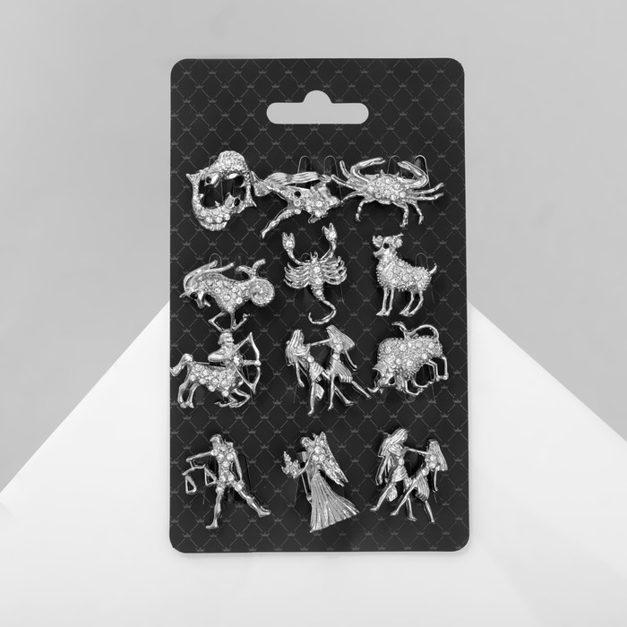 Брошь «Знаки зодиака» ассорти, гороскоп, цвет белый в серебре (неделимая фасовка 12 шт., цена за шт.)