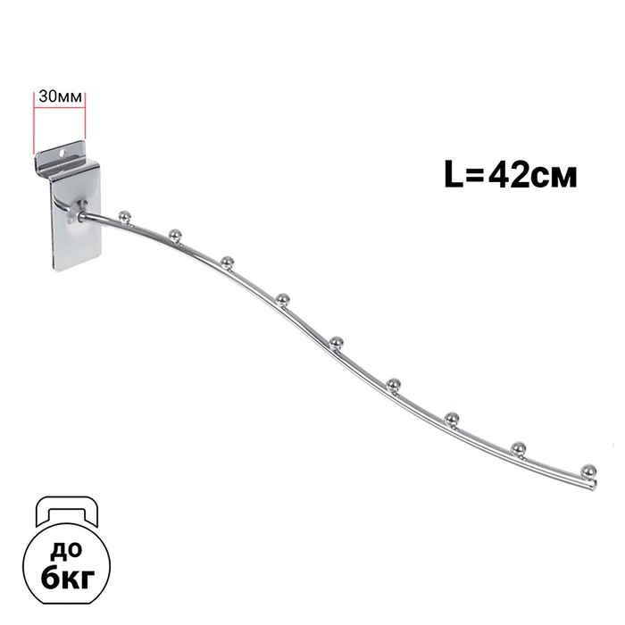 Кронштейн для экономпанелей, изогнутый, 6 шариков, d=6 мм, L=32 см, цвет хром
