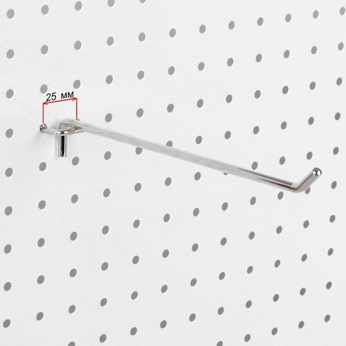 Крючок одинарный для металлической перфорированной панели, d=6 мм, L=25 см, шаг 25 мм, цвет хром