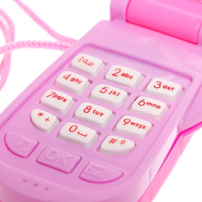 Яркий огонёк и картинки привлекут внимание ребёнка. Телефончик можно носить на шее. Есть верёвочка.