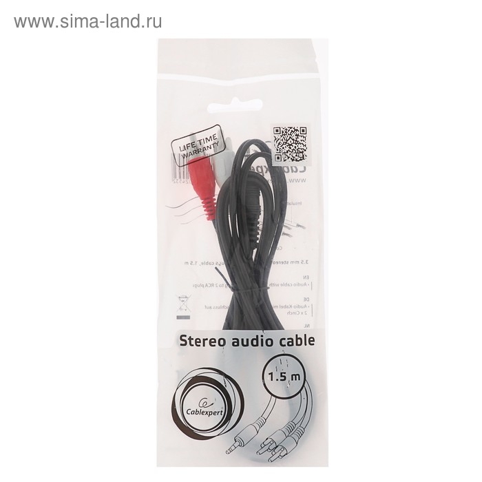 Кабель-переходник аудио Cablexpert CCA-458, Jack 3.5 мм(m)-2xRCA(m), 1.5 м, черный