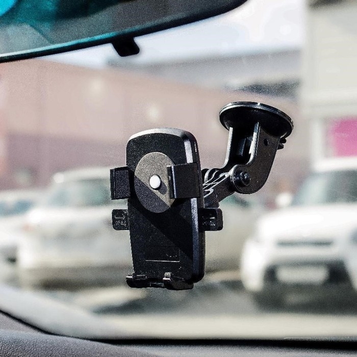 Раздвижной держатель предназначен для удобной и надёжной фиксации телефона и других мобильных устройств. Изделие имеет автоматический механизм захвата с помощью кнопки на лицевой стороне. Аксессуар легко крепится на лобовое стекло и приборную панель. Поворотный механизм на 360° позволяет задать любое положение гаджету.