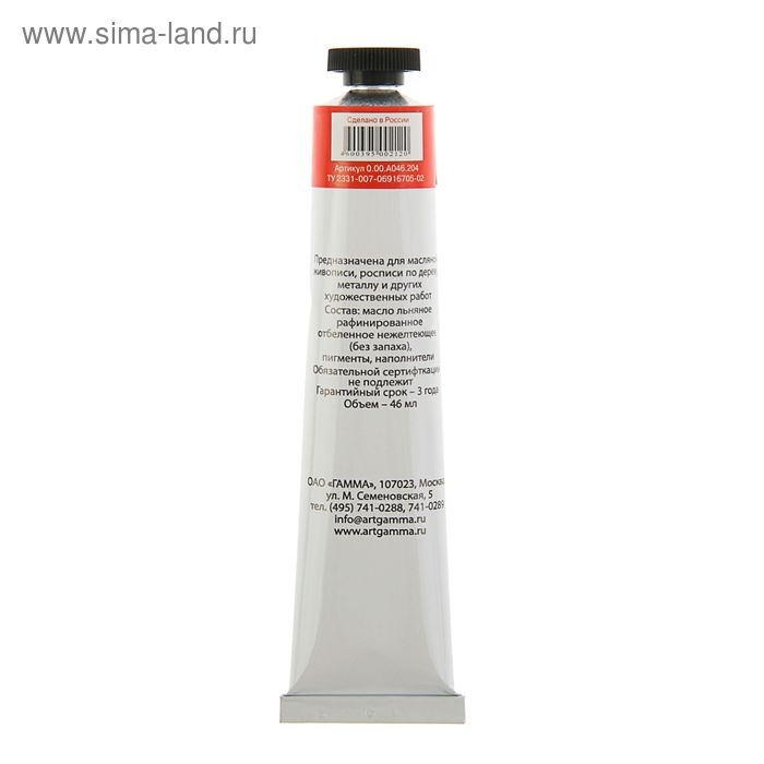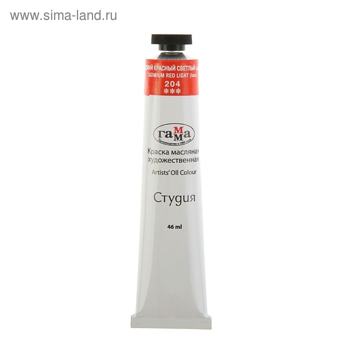 Краска масляная в тубе 46 мл, Гамма "Студия" №204, кадмий красный светлый, имитация