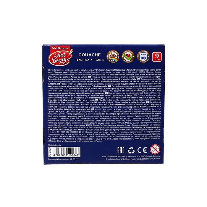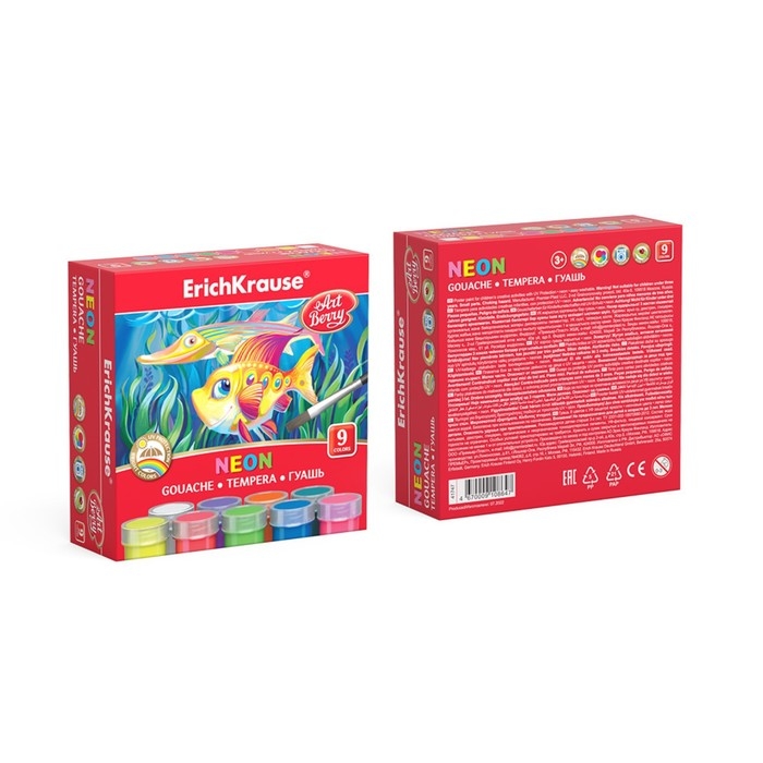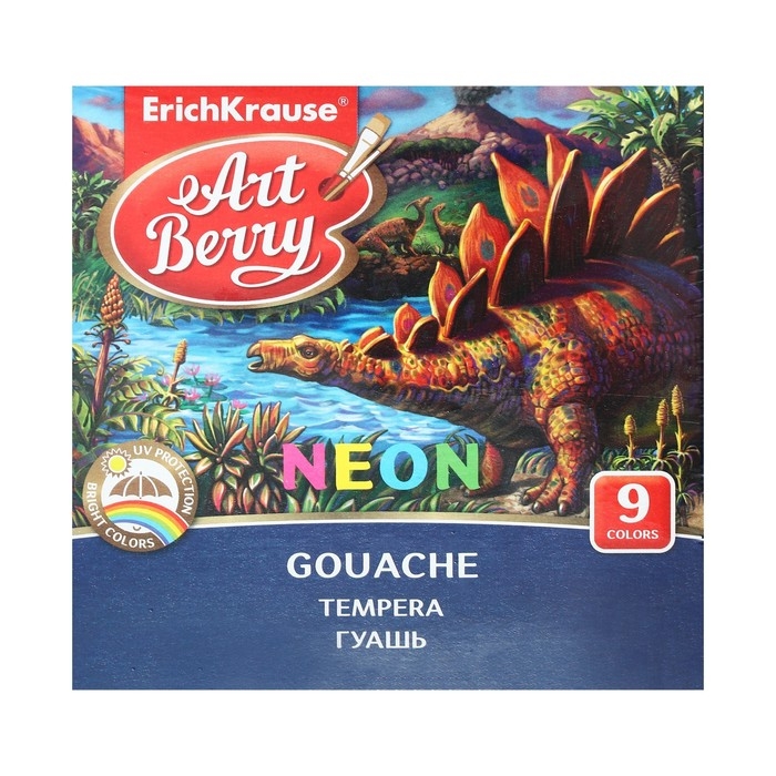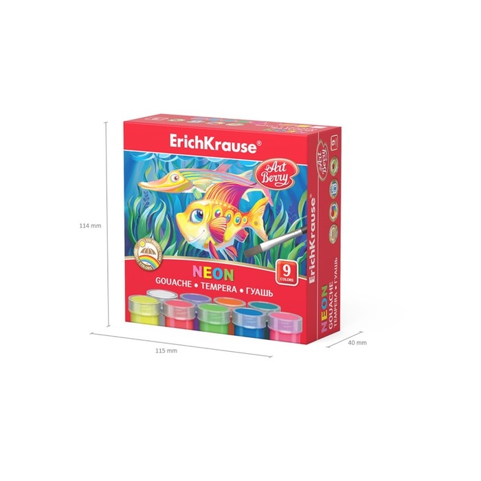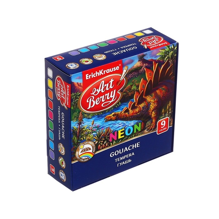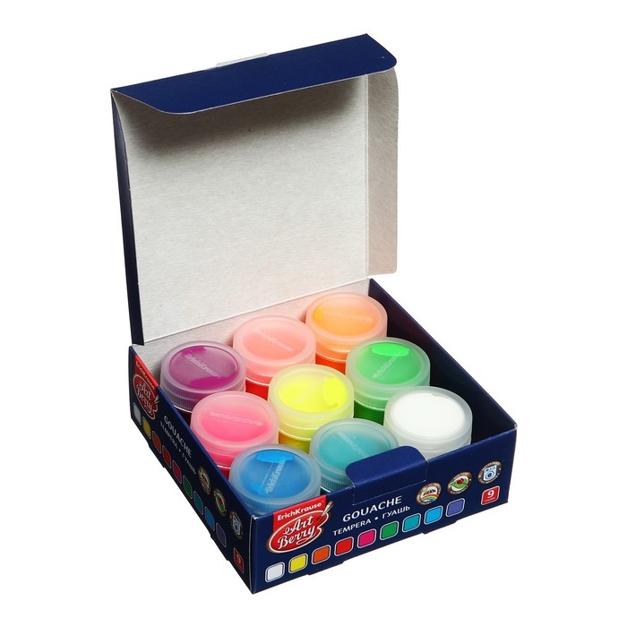 Гуашь 9 цветов по 20 мл, ErichKrause ArtBerry, неоновая, люминесцентный эффект, в картонной упаковке