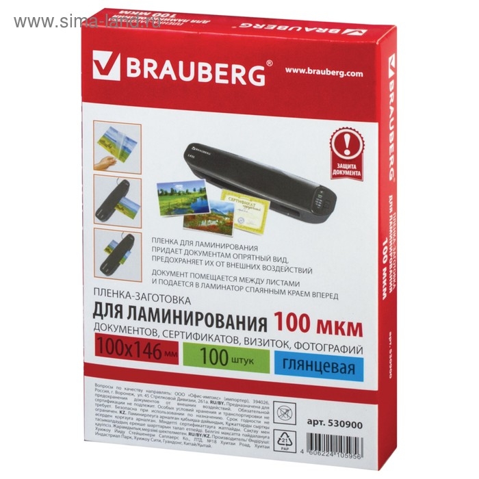 Пленки-заготовки для ламинирования 100 штук, 100 х 146 мм, 100 мкм