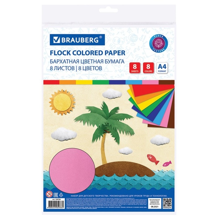 Набор цветной бархатной бумаги BRAUBERG предназначен для творчества, хобби, моделирования, оформления презентаций как любителями, так и профессионально занимающимися людьми. Набор бархатной односторонней цветной бумаги плотностью 110 г/м2 включает 8 листов формата А4 (210х297 мм) в 8-ми разнообразных и насыщенных однородных цветах. Листы упакованы в полиэтиленовый пакет с липким краем, легко режутся и сгибаются.