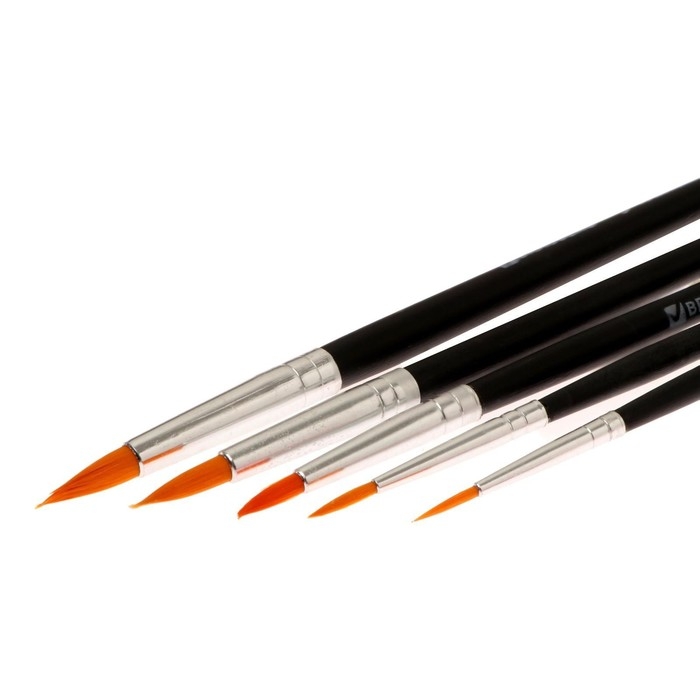 Набор кистей, синтетика, 5 штук, BRAUBERG (круглая, № 1, 2, 3, 4, 5), блистер