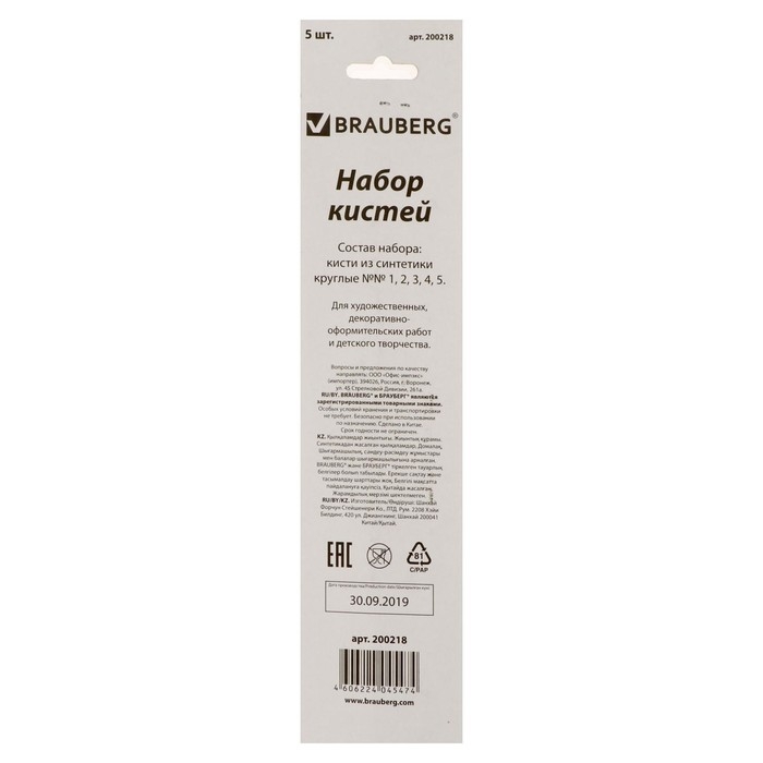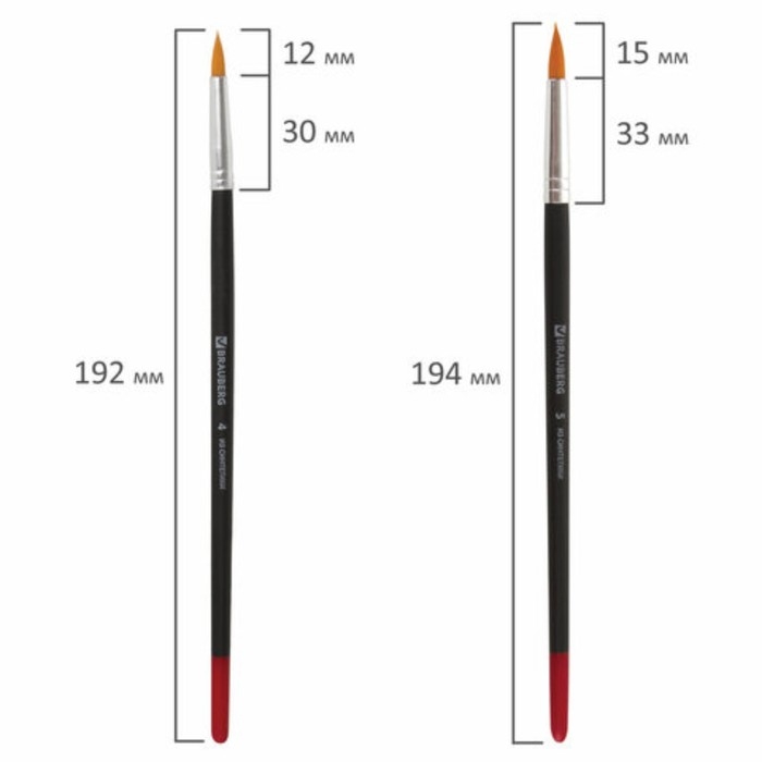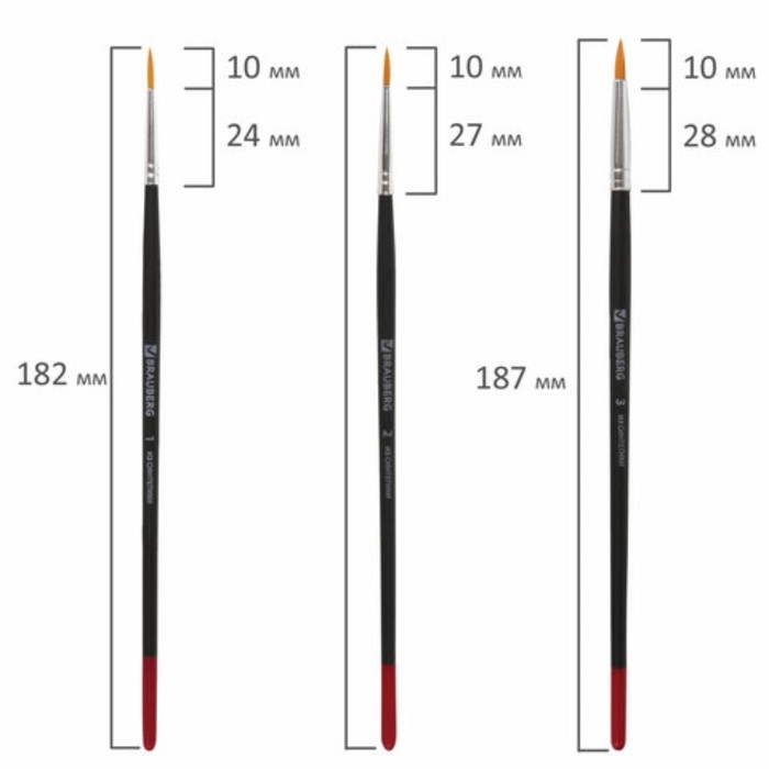 Высококачественный набор синтетических кистей BRAUBERG - это отличная замена натуральным кистям. Подходят для работы с любыми видами красок.