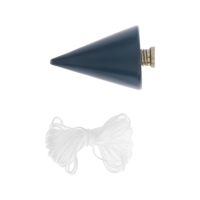 Конусный отвес ТУНДРА — приспособление, состоящее из тонкого шнура и небольшого грузика на его конце. Предназначен для разметки и проверки вертикальных линий, углов и поверхностей при малярных и строительных работах.