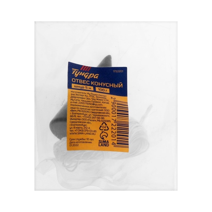 Отвес конусный ТУНДРА, шнур 5 метров, 200 г