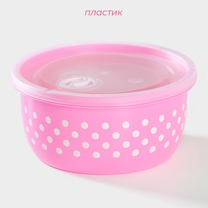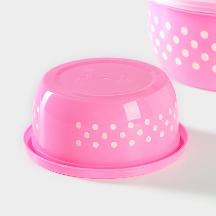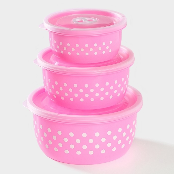 Ланч - боксы Доляна «Горошек», набор 3 шт: 300/600/900 мл, круглые, цвет розовый