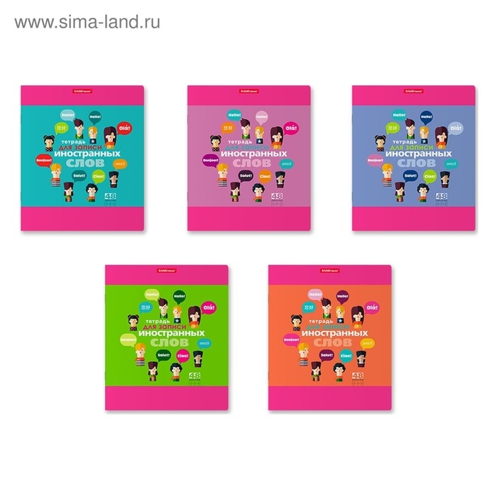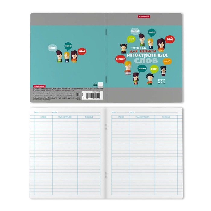 Тетрадь для записи иностранных слов, 48 листов в клетку, ErichKrause Hello, три столбца: слово, транскрипция, перевод, МИКС