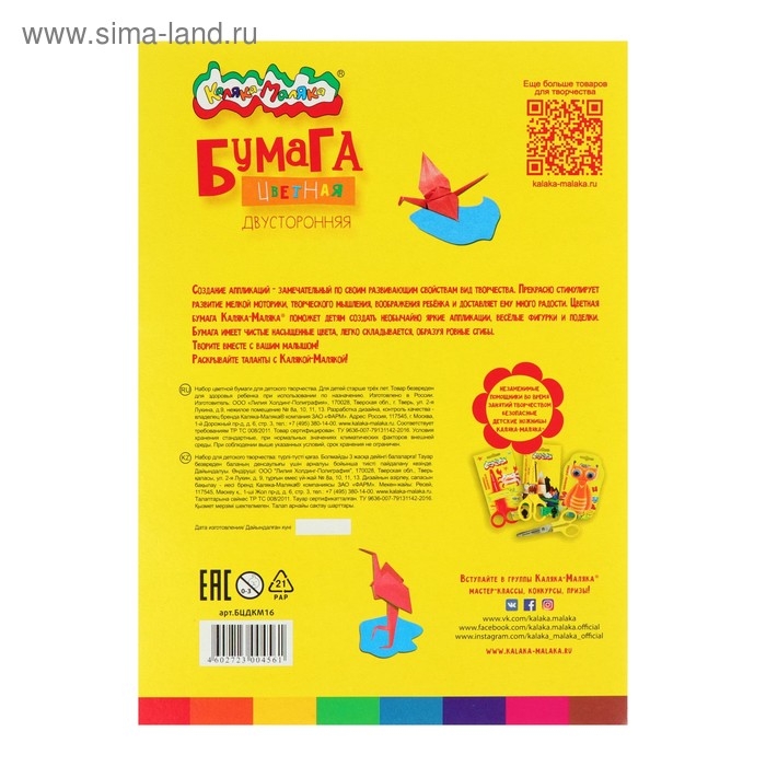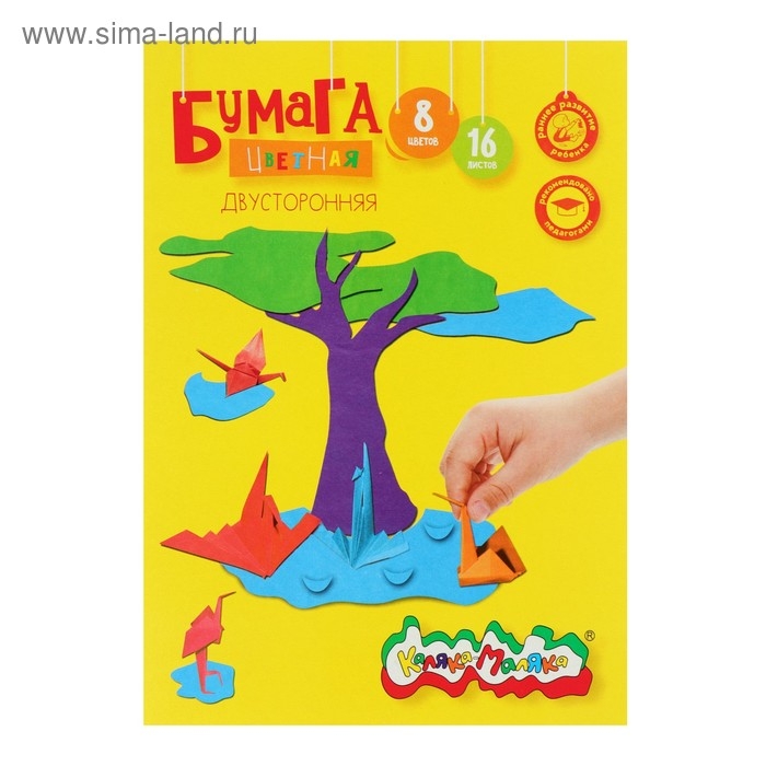 Бумага цветная двусторонняя А4, 16 листов, 8 цветов "Каляка-Маляка"