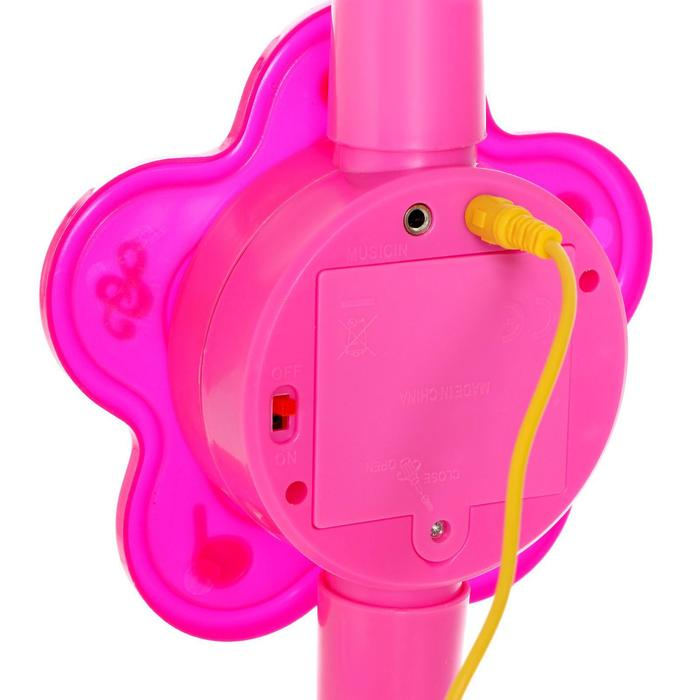 Микрофон располагается на стойке, что позволит юному дарованию расслабиться и почувствовать себя настоящим артистом на сцене! Высота стойки регулируется, это даёт возможность подстраивать её под рост малыша.