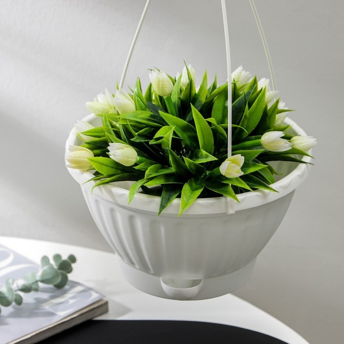 Кашпо уличное для цветов Альтернатива «Мирабель», 2.5 л, подвесное, с прикорневым поливом, пластик, белое