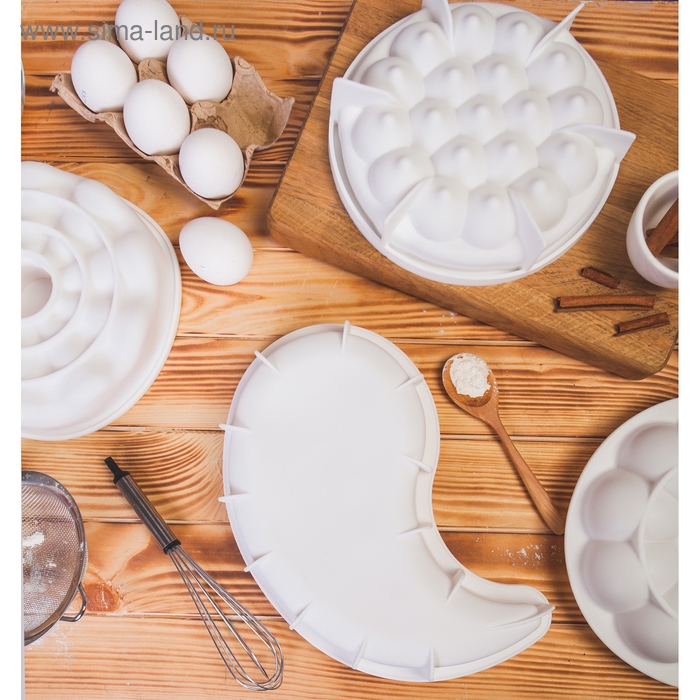 Форма для муссовых десертов и выпечки Доляна «Рябь», силикон, 18×18 см, внутренний размер 16×6,5 см, цвет белый