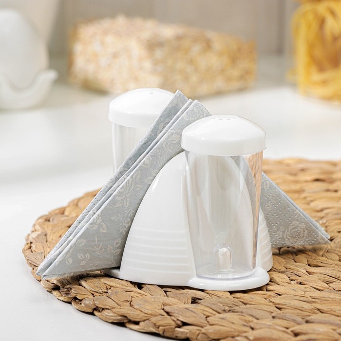 Набор для специй с салфетницей Cake, 2 шт: солонка и перечница 70 мл, цвет слоновая кость
