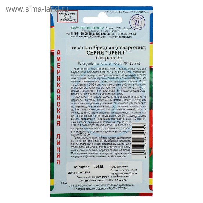 Семена комнатных цветов Герань "Скарлет", F1, 5 шт.