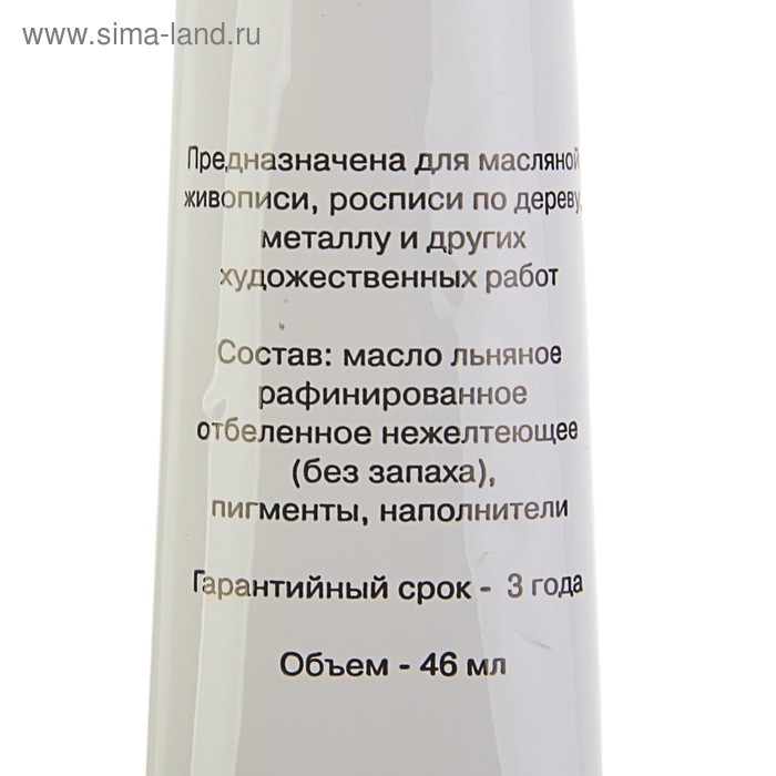 Краска масляная в тубе 46 мл, ЗХК "Сонет", белила титановые, 2604101