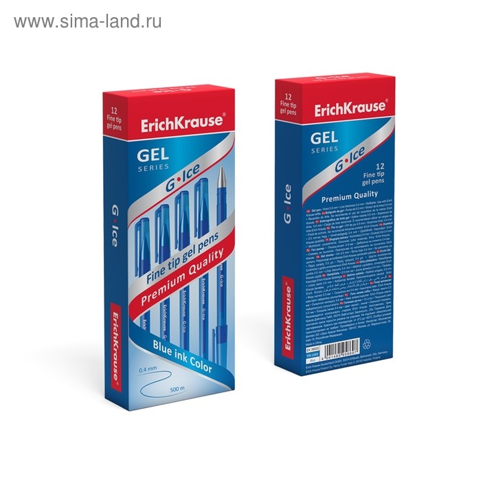 Ручка гелевая ErichKrause G-Ice, узел 0.5 мм, чернила синие, длина линии письма 500 метров