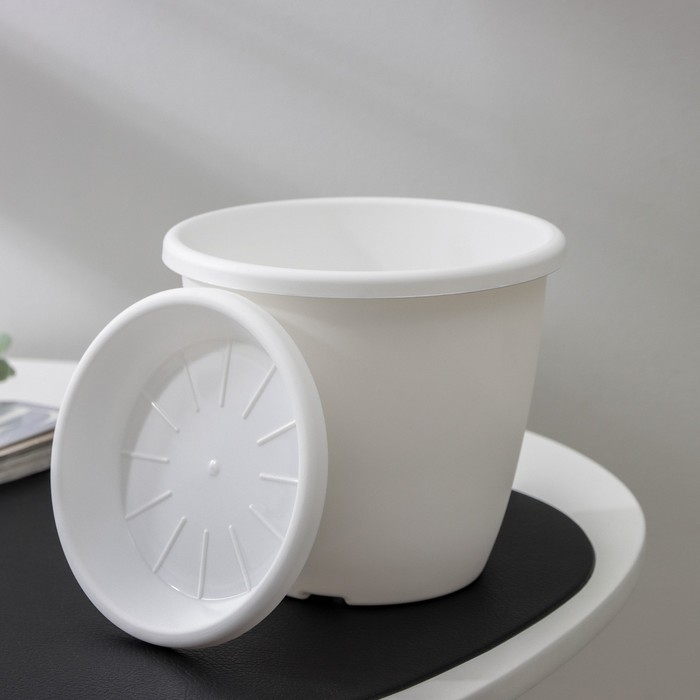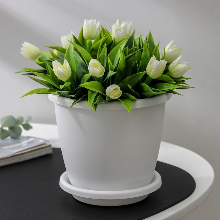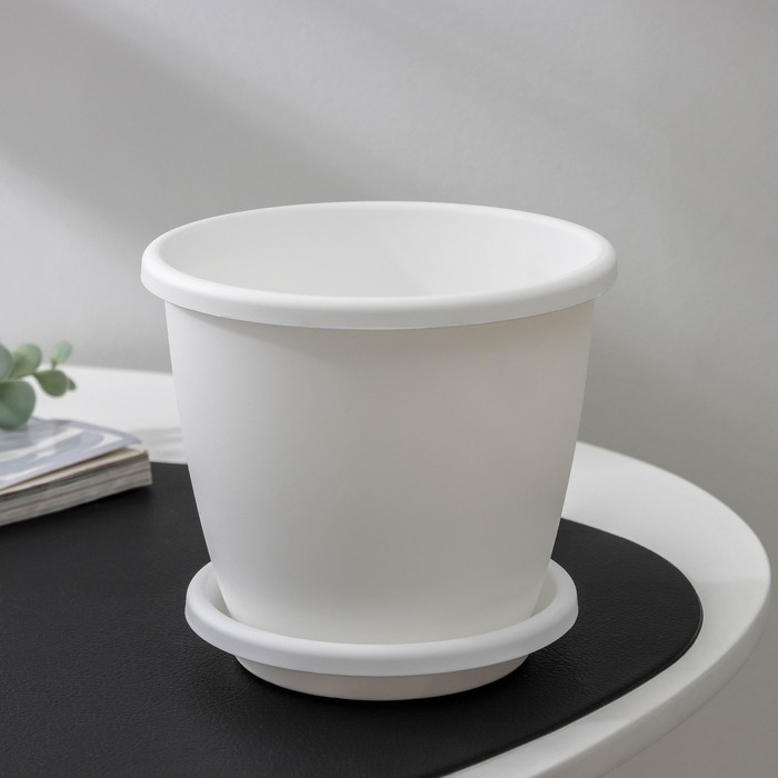Горшок для цветов с поддоном «Афина», 1,1 л, пластиковый, цвет белый