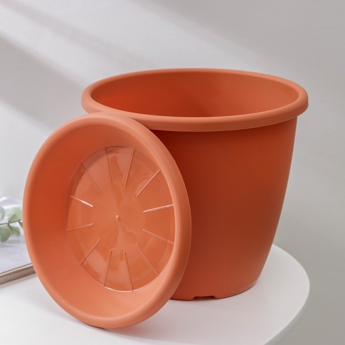 Горшок для цветов с поддоном «Афина», 5,5 л, пластиковый, цвет коричневый