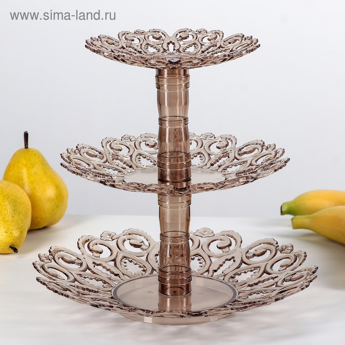 Фруктовница 3-х ярусная «Мелодия», d=16 см, 21 см, 27 см, цвет кофейный
