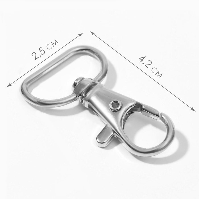Карабин металлический, 42 × 25 мм / 20 × 3 мм, 10 шт, цвет серебряный