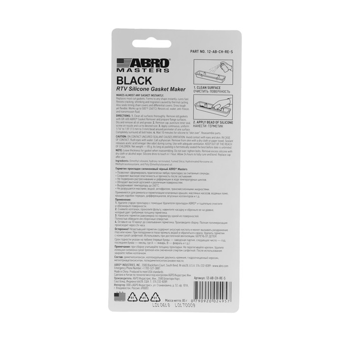 Герметик прокладок ABRO MASTERS черный, силиконовый, 85 г, 12-AB-CH-RE-S
