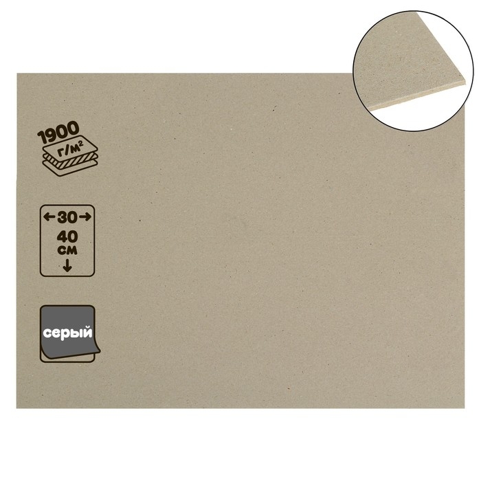 Картон переплётный (обложечный) 3.0 мм, 30 х 40 см, 1900 г/м2, серый
