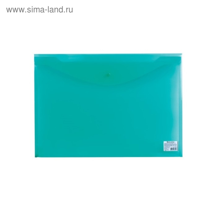 Папка-конверт на кнопке А3, 180 мкм, BRAUBERG, прозрачная, зелёная