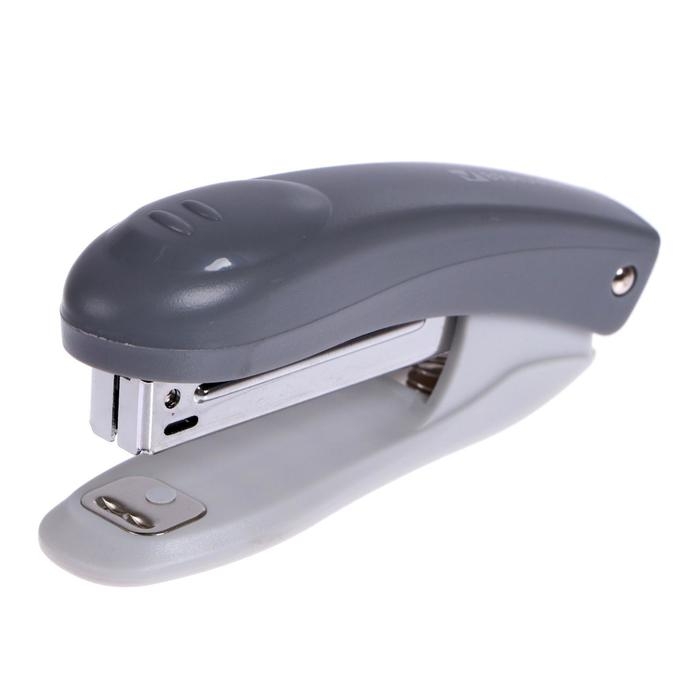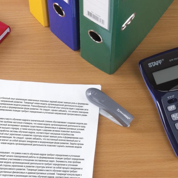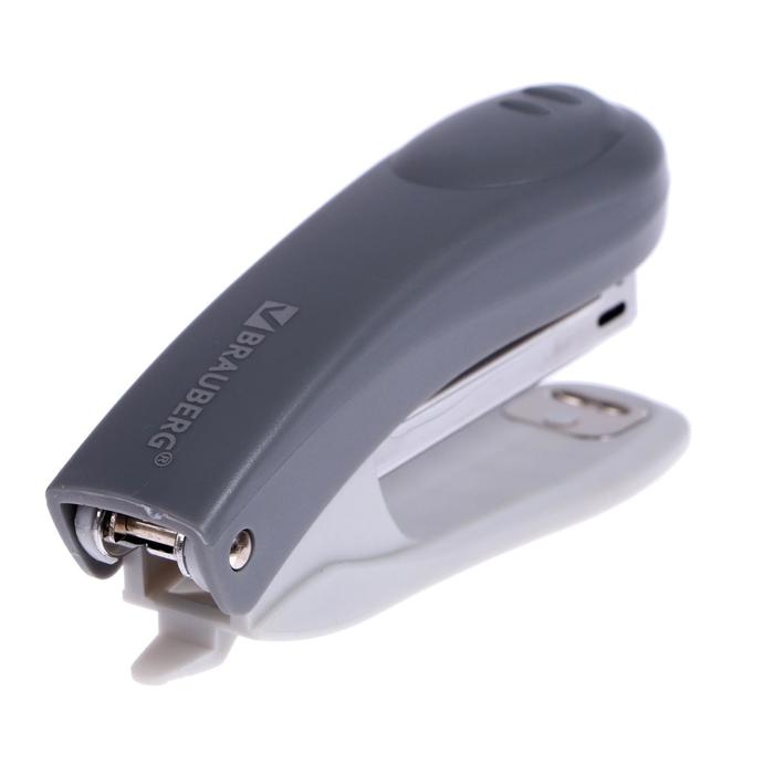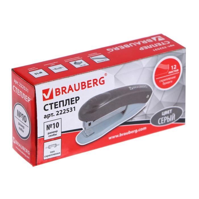 Степлер № 10, до 12 листов, BRAUBERG Einkommen, пластиковый корпус, встроенный антиСтеплер, серый
