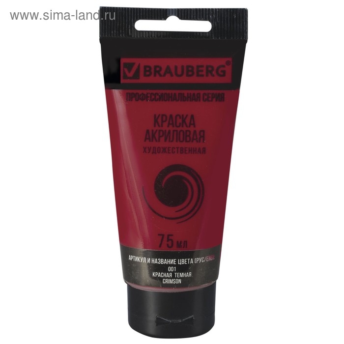 Краска акриловая художественная туба 75 мл, BRAUBERG "Красная тёмная"