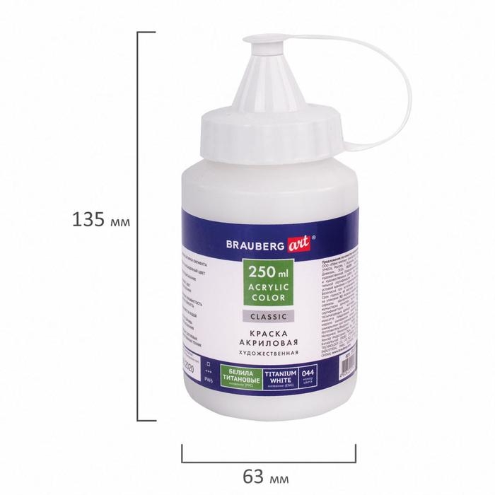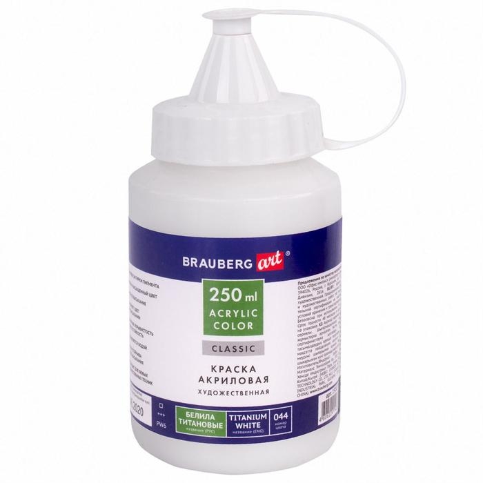 Краска акриловая художественная 250 мл, BRAUBERG ART CLASSIC, "Белила титановые"