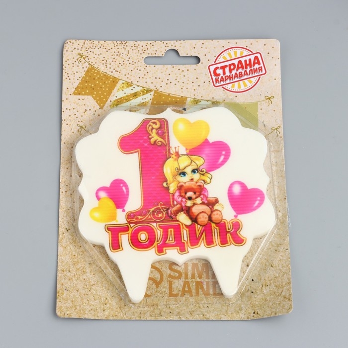 Свеча в торт на шпажке для девочек "Мне годик", 7,7 см, 12 мин, 65 г
