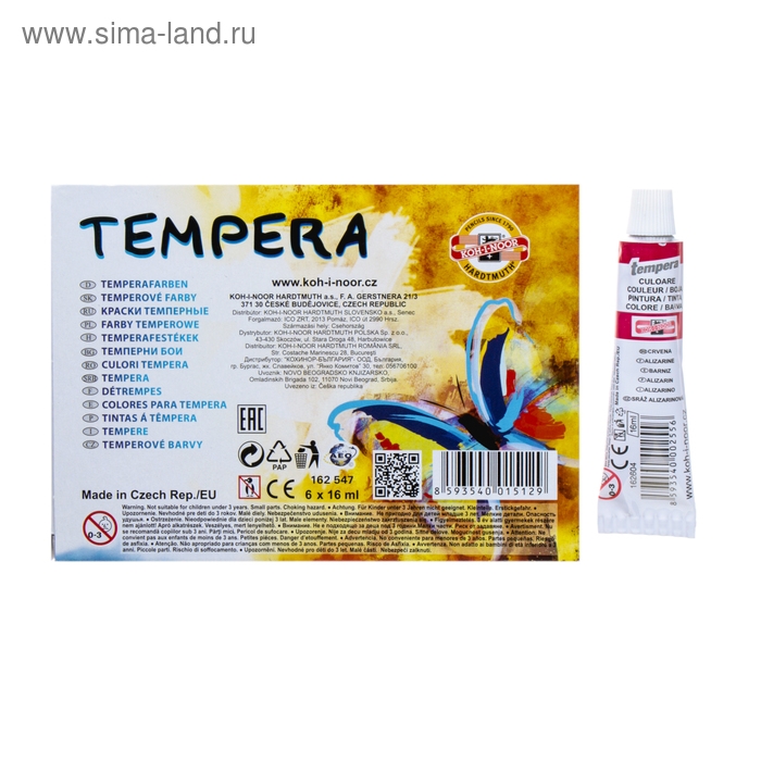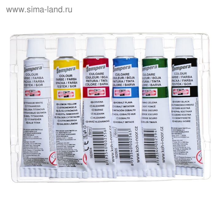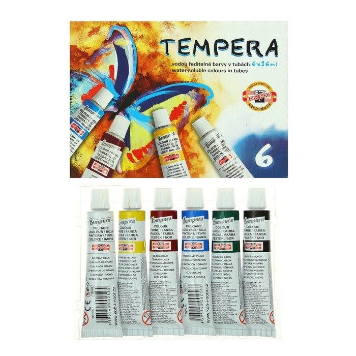 Краски темперные 6 цветов по 16 мл, Koh-I-Noor, в тубах, без кисти