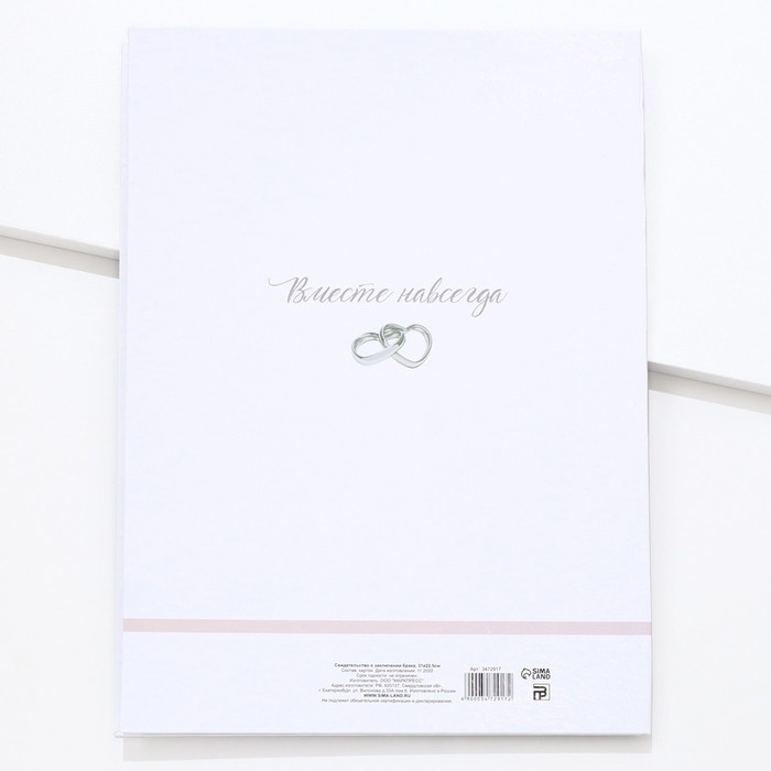 Свидетельство о заключении брака "Гармония" софт тач, 31х22,5 см