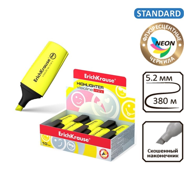 Маркер текстовыделитель ErichKrause Visioline Mini, 0.6-5.2 мм, флуоресцентные чернила на водной основе, желтый