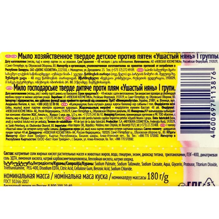 Мыло Ушастый Нянь «Против пятен», хозяйственное, 180 г
