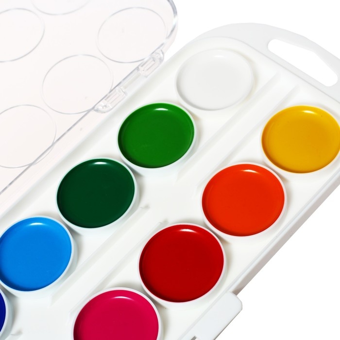 Краски акварельные, в кюветах, с кистью, 12 цветов