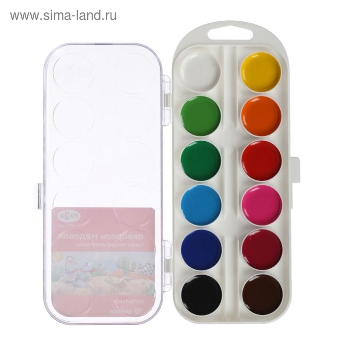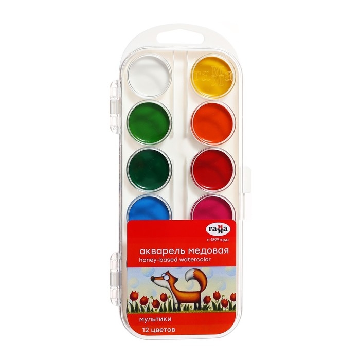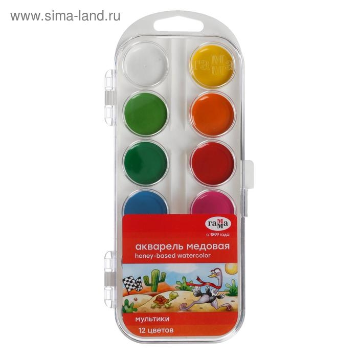 Акварель 12 цветов "Гамма" "Мультики", медовая, без кисти, пластик