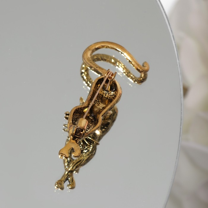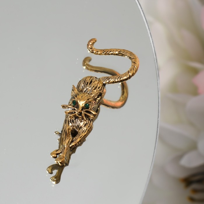 Брошь «Кошка грациозная», цвет зелёный в чернёном золоте
