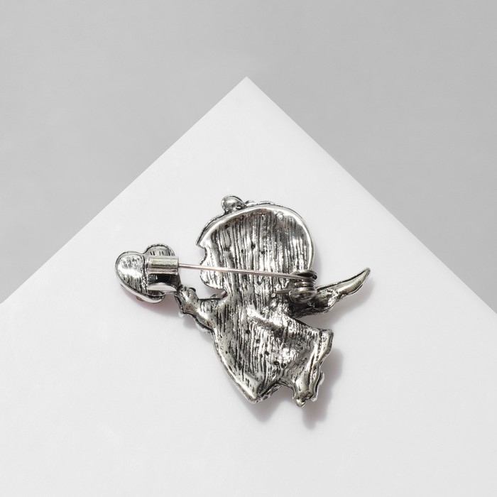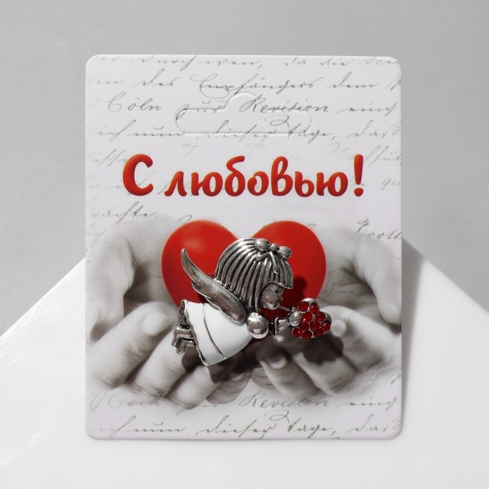 Брошь «Купидон» девочка, цвет красно-белый в чернёном серебре