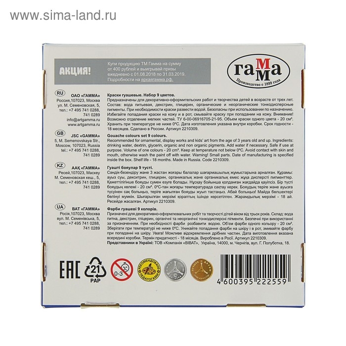 - Цветовая палитра гуаши данной серии состоит из классических оттенков краски.