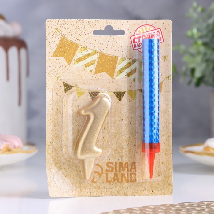 Свеча для торта цифра "1", "Овал + фонтан" золотая