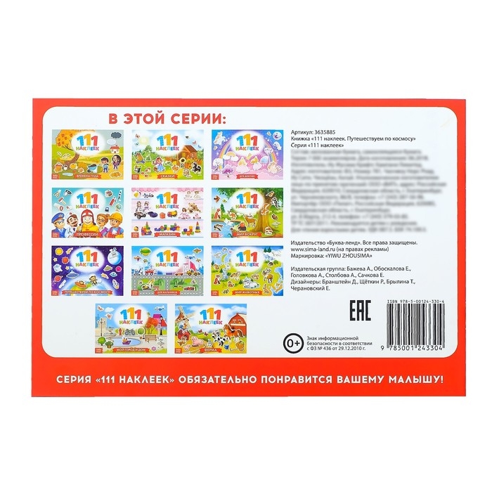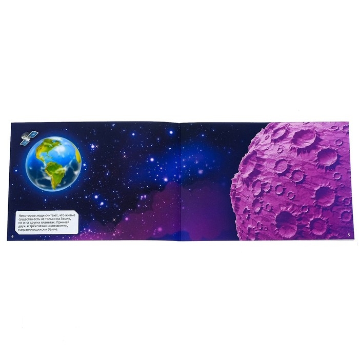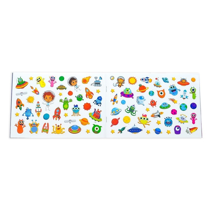 В альбоме представлено более 100 наклеек с красочными изображениями ракет, планет, звёзд и инопланетян. Яркие картинки тренируют визуальное восприятие малыша, память и воображение.