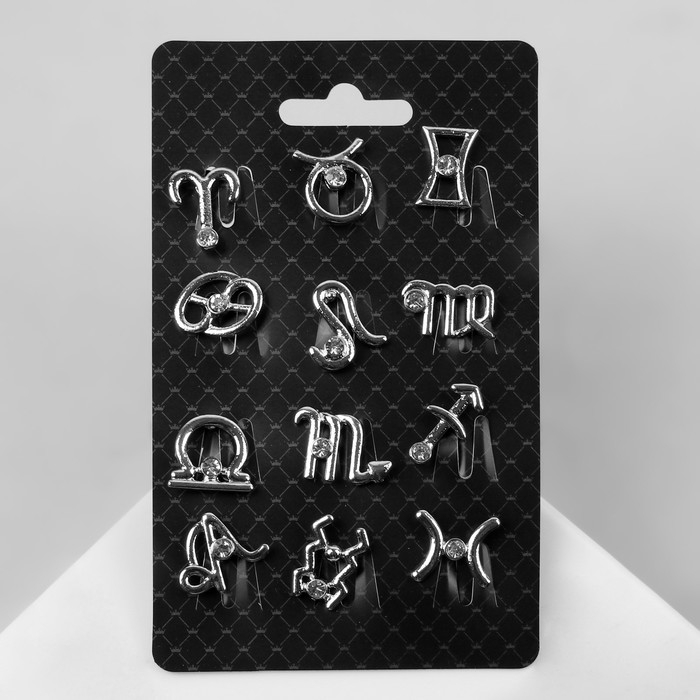 Значок «Знаки зодиака» гороскоп, цвет белый в серебре (неделимая фасовка 12 шт., цена за шт.)